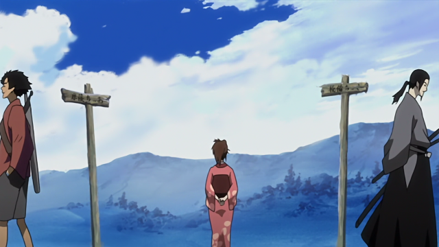除了三人的過去,旅途上所遇到的各種事件與人物,都以單元劇的形式出現,這是公路電影常見的表現形式,從仁與妓女沙羅間的短暫戀愛、為了尋求畫技而遠渡西方的繪師的故事、受幕府指示追殺三人的盲女樂師、許許多多為了與無幻、仁對決尋求武藝巔峰的浪人,都是旅途上的過客,如同最後一話的標題「生死流轉」所述。