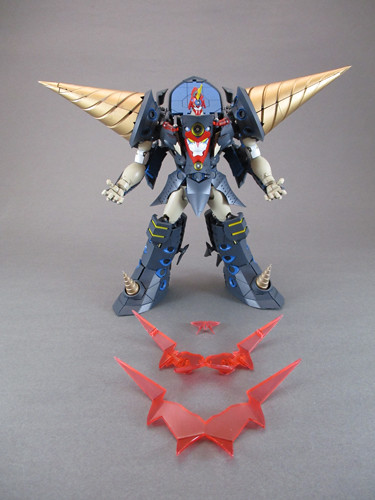 「大完全變形 超銀河紅蓮螺巖」集結了 STUDIO HALFEYE 所有技術製作,在巡航型態「超銀河大紅蓮」擁有全長 30 公分的大尺寸,並且刻畫出船尾螺旋槳等豐富細節。更讓人驚豔的是無須替換任何零件就能變形為全高 20 公分的機器人型態超銀河紅蓮螺巖。在此型態下可運用各部關節把玩出戰鬥姿勢,肩部特徵的巨大鑽頭更能拆卸下來,裝備於右腕重現必殺技「超銀河 GIGA DRILL」!