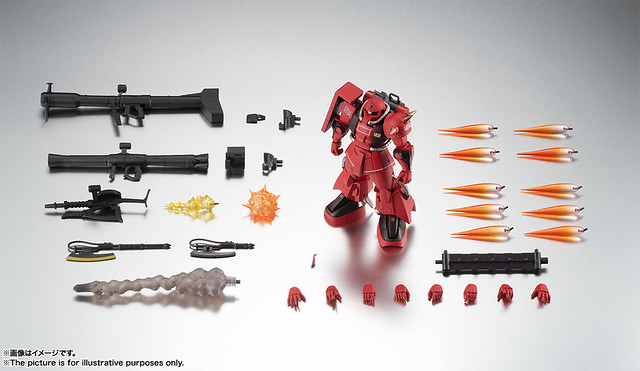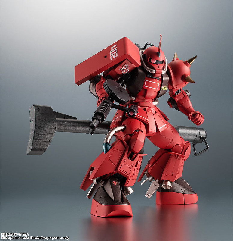 「ROBOT魂 強尼萊汀專用高機動型薩克II ver. A.N.I.M.E.」機身重現了「真紅閃電」強烈的深紅配色以及「402」、「RB」等著名的機身標誌。在雙肩、膝關節都採用拉出式構造,擴大可動範圍使動作更加自然,頭部單眼攝影機也如過去商品為可動設計。武裝部份則收錄薩克火箭炮、薩克機關槍、關閉/啟動兩種狀態的熱能斧,以及尺寸相當魄力的巨型火箭炮,可搭配多達 10 個的推進器噴射特效、機槍發射、火箭炮發射、爆破特效零件,把玩出躍動感十足的高速遊擊戰場景!