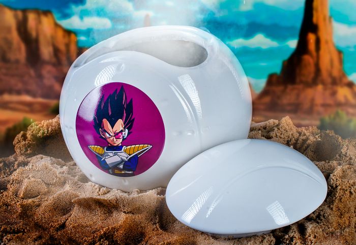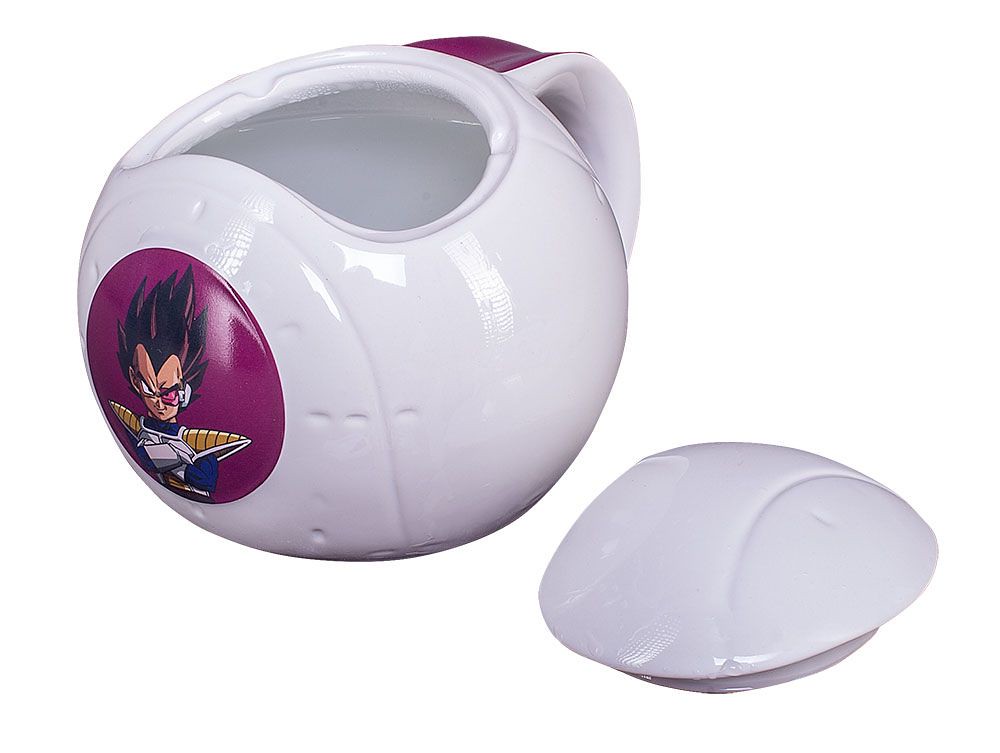 以 達爾/貝基塔 在《七龍珠》中搭乘的賽亞人太空船為造型,將圓形的太空艙與馬克杯巧妙結合,設計為圓弧形的杯身,與杯蓋組合成完整的太空船。容量約為 500 ml.,陶瓷材質製作,參考原作中的白紫配色,杯身上有淺淺的太空船艙紋路。
