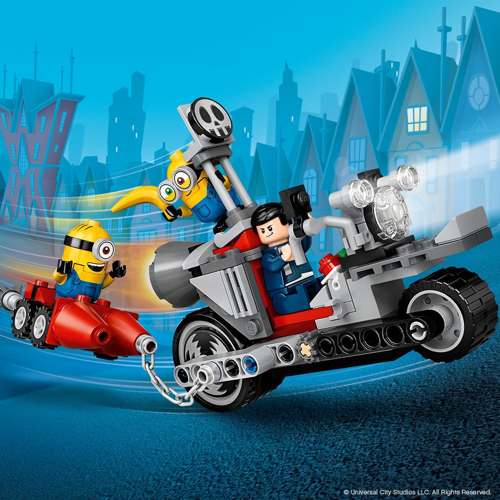 這款人車載具組包含了格魯(Gru)跟 Bob、Stuart,不得不說格魯的人偶也太不像了吧!邊車是以鎖鏈零件與摩托車相連,讓 Stuart 站在上面超級可愛。