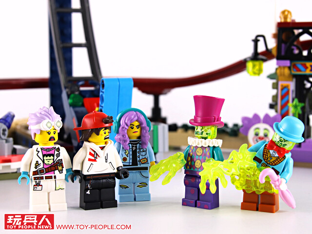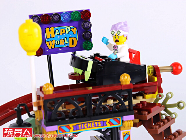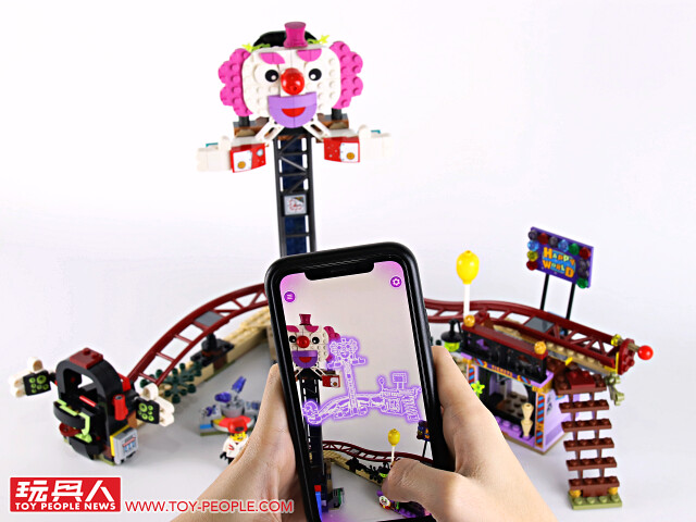 最後要看到的是有著滿滿小丑的「LEGO 70432 Haunted Fairground」!簡單地建構出驚嚇指數不高的雲霄飛車與自由落體,設施不恐怖沒關係,因為要嚇人的可是這裡的鬼魂:D~由於零件數的限制,所以場景只有基本的輪廓,若是搭配一些背景或自行擴充的話會有更豐富的視覺效果,藉著互動機關就能觸發「鬧鬼事件」非常有趣。