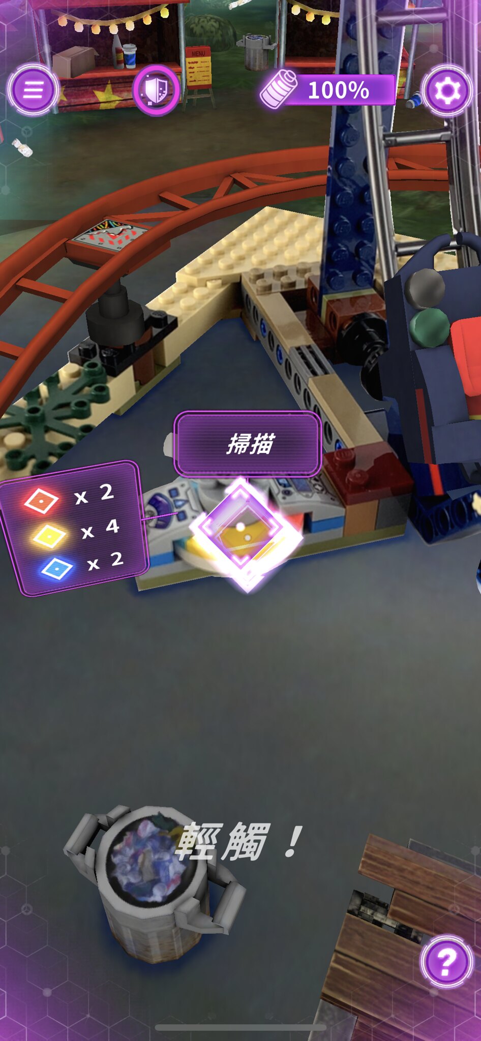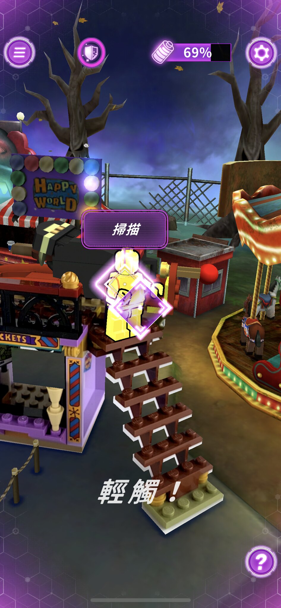 在介紹完三款盒組之後就來跟各位玩具人講解一下關於 Hidden Side 系列的同名 APP 遊玩方式吧~進入遊戲之後首先就是要找到哪裡有鬼,也就是所謂的「掃描盒組」,下圖的一個圖示就代表一款盒組,點選你擁有的盒組、組裝好之後就能夠開始了。