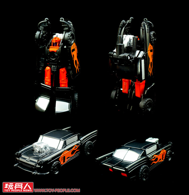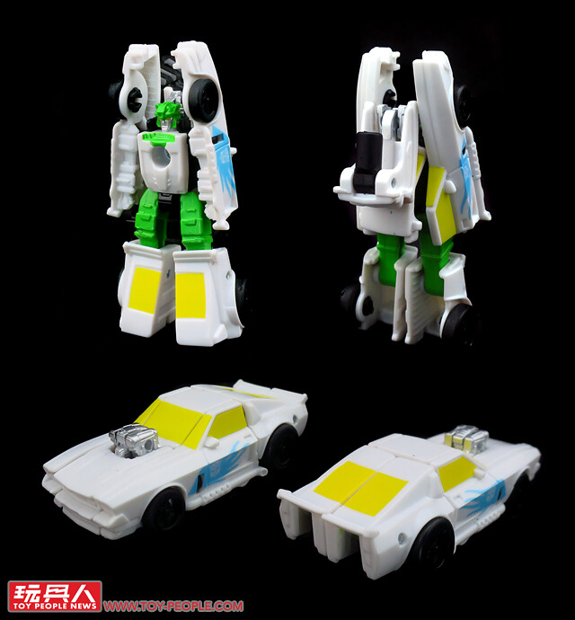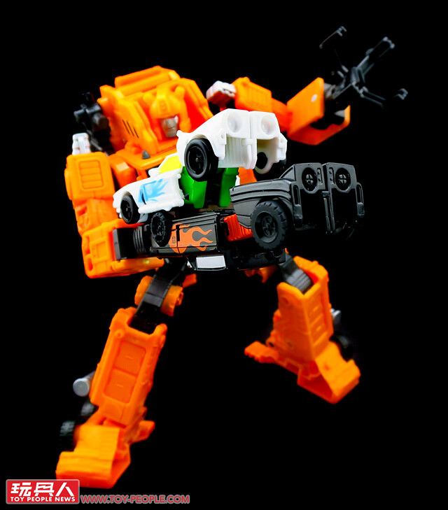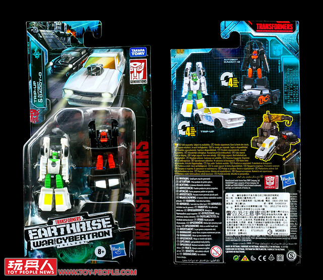 ▼ WFC-E3「絆倒」(Trip-Up)和「大老爹」(Daddy-O,對應G1的Big Daddy),來自G1博派的「改裝巡邏隊」(Hot Rod Patrol),可在改裝肌肉車與微形戰士間自由變形,也能兩兩合體為武器供其他角色拿持。