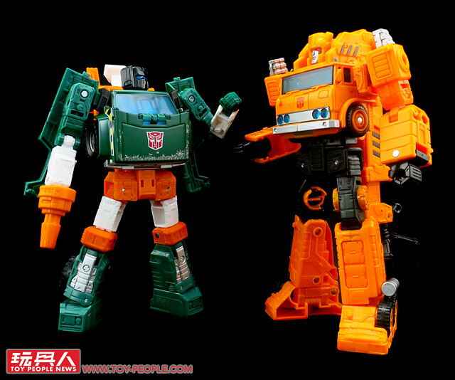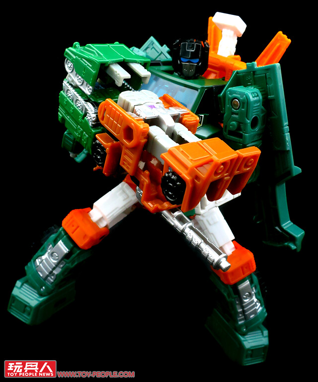 ▼ WFC-E4「咆哮」(Growl)與「震彈」(Bombshock),來自G1狂派的「軍事巡邏隊」(Military Patrol),可從軍用載具變形為微形戰士,同樣具備有合體為中型武器的能力,藉此強化狂派同僚的火力。