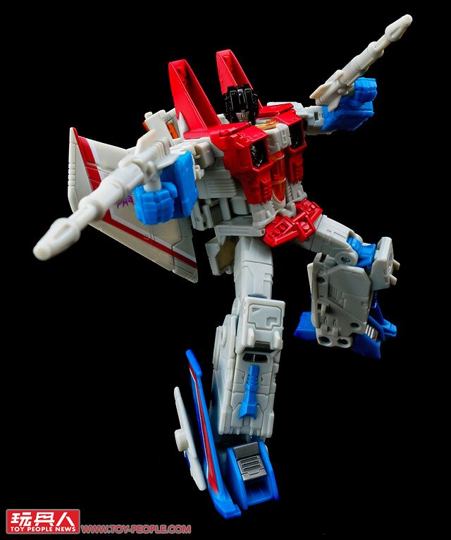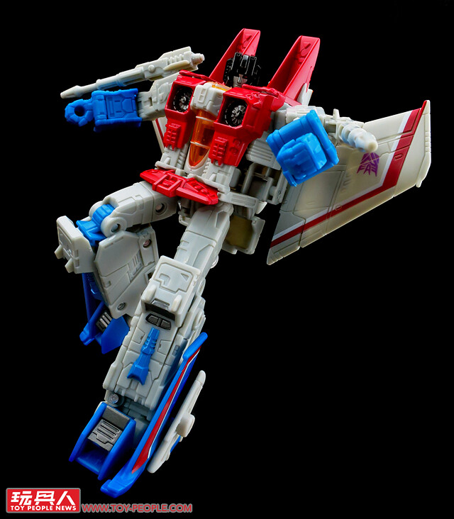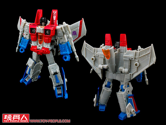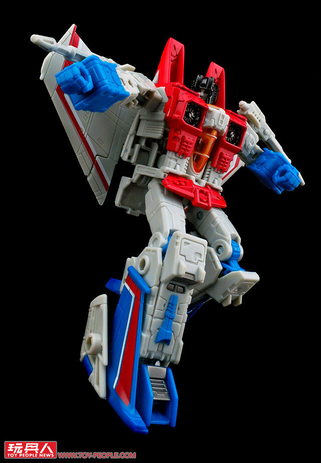 ▼ WFC-E9「天王星」(Starscream),狂派副官、密卡登的左右手,同時也是個野心勃勃的空軍參謀,總是在心中盤算著扳倒密卡登的詭計,率領著巡獵者小隊(Seekers)對博派進行冷酷無情的空中打擊。繼圍城系列的塞星金字塔戰鬥機,地球崛起則是還原天王星在來到地球後掃瞄的F-15鷹式戰鬥機模式,並附屬了招牌的武裝「零質雷射線發射器」(Null-Ray Laser Luncher)。