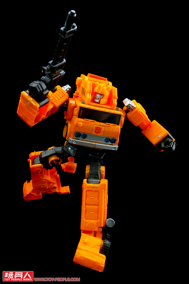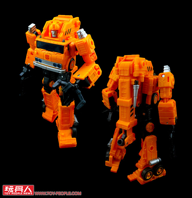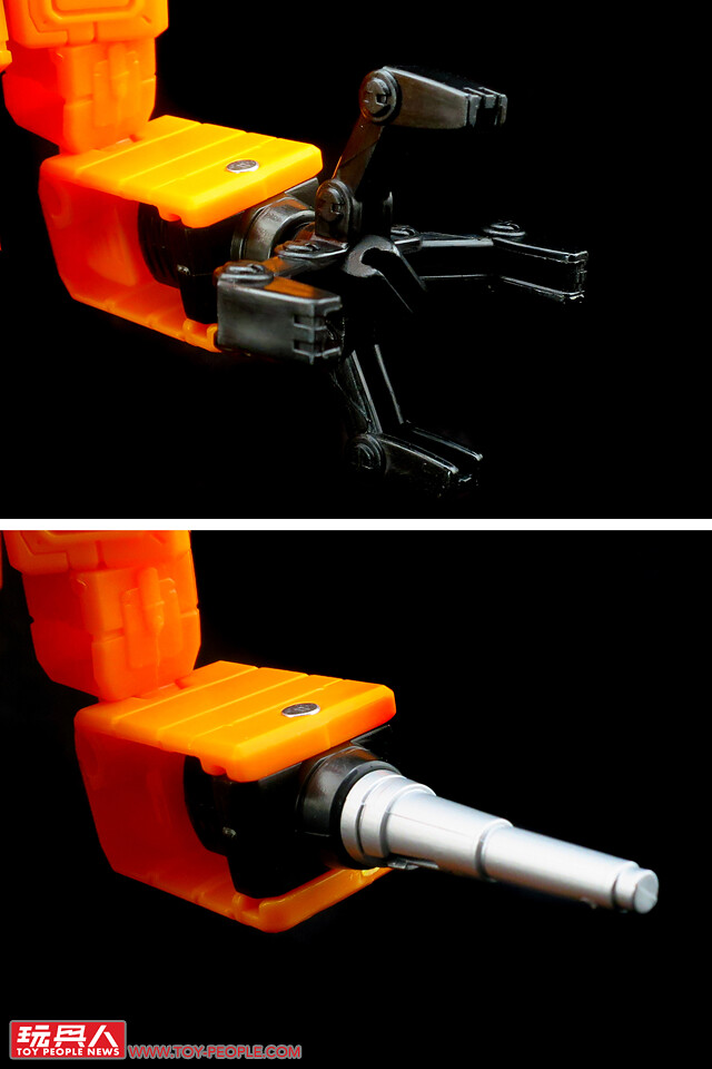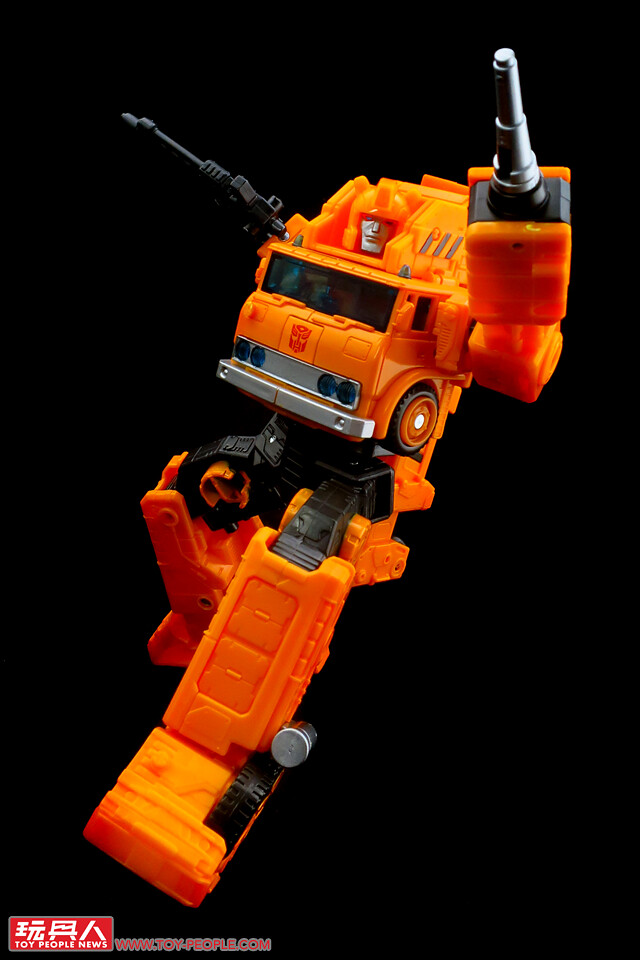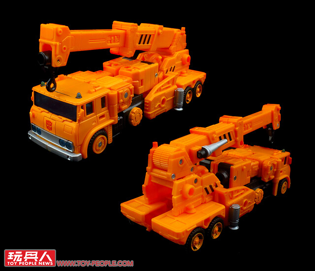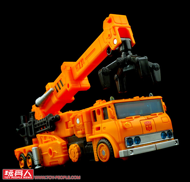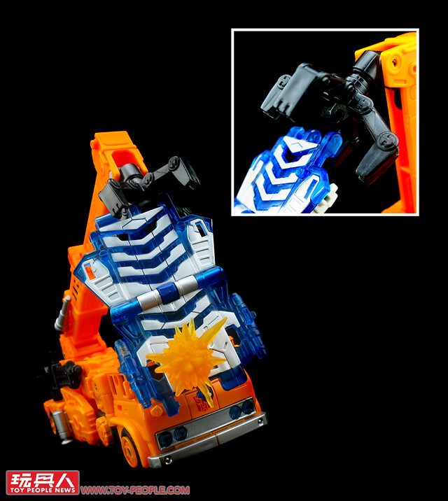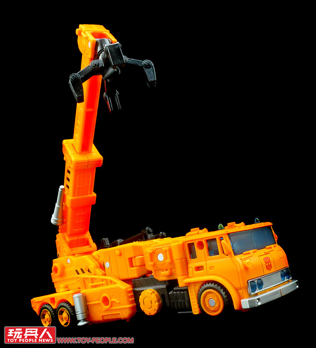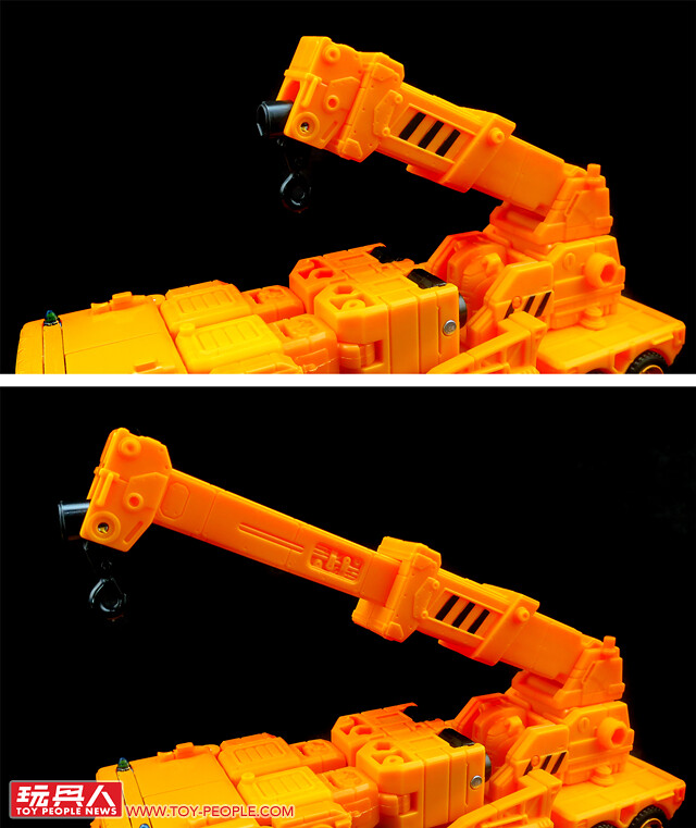 ▼ WFC-E10「吊鉤」(Grapple),出自G1的博派建築師,更貼切的來說,他是位醉心於建造的藝術家,與同僚滑車(Hoist)有著相當不錯的交情。地球崛起版還原了他在動畫中登場的形象,吊車形態類似元祖的三菱(Mitsubishi)Fuso設計,附屬多樣替換武裝,鉤爪具備了A.I.R.系統卡榫,可和其他角色進行連動組合。