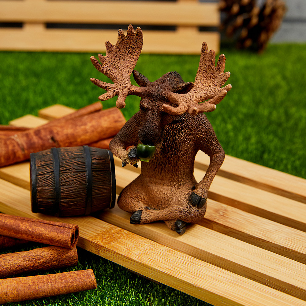 別看沉穩的麋鹿慢慢地喝著清酒,他可是千杯不醉的高手喔! 盤著腿沉思著什麼,就知道誰是這個局的老大了!