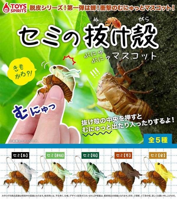日本的轉蛋玩具品牌 Toys Spirits (トイズスピリッツ 將推出搞怪新作:「金蟬脫殼」(暫譯,セミの抜け殻)轉蛋,一共推出五款,一轉參考售價為 300 日幣,預計將於 2020 年 07 月發售。