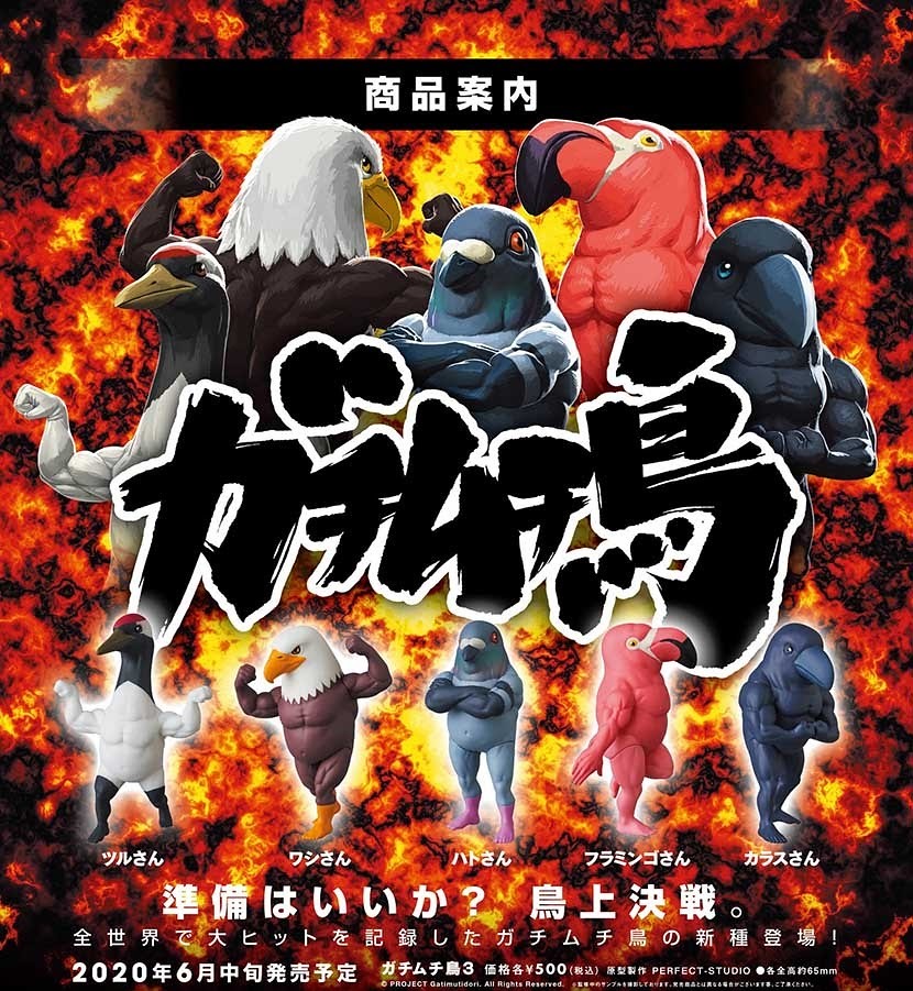 因惡搞套圖暴紅而推出轉蛋化商品的「戰鬥筋肉鳥系列」(暫譯,ガチムチ鳥シリーズ)在大熱賣的第一彈與第二彈後,日本 MEDICOM TOY 公司(株式会社メディコム・トイ)又將推出第三彈續作:「戰鬥筋肉鳥 3」轉蛋,一共有五款,參考售價為一轉 500 日幣,預計於 2020 年 06 月中旬發售。