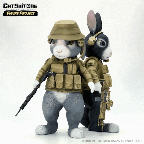 《CAT SHIT ONE -THE ANIMATED SERIES-》這部動畫電影改編自日本漫畫家小林源文所創作的同名作品《貓屎一號》,雖將兔子、貓、駱駝...等可愛的動物們繪製成劇中人物,但故事情節卻是槍林彈雨、硬派寫實、影射史實,描寫越戰期間所屬美軍特殊部隊,由帕奇、萊茲、波塔斯基等人組成的「貓屎一號」小隊的戰爭故事。而動畫版更請到 ANIMA 公司負責 CG 製作,笹原和也執導、岡部淳也擔任製作人,於 YOUTUBE 上免費公開的版本已突破 1800 萬觀看次數。