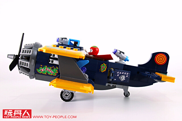 再來是小編超愛的特技飛機「LEGO 70429 El Fuego's Stunt Airplane」!復古的雙翼飛機本體主要以深藍拼黃為主調,並以紅色、草綠色點綴,配有單人座、可轉動的螺旋槳與子彈發射機構,整體的造型十分好看!這裡題外話一下,喜歡雙翼飛機的樂高迷也不能錯過叔比狗(Scooby-Doo)主題的「LEGO 75901 Mystery Plane Adventures」呀~