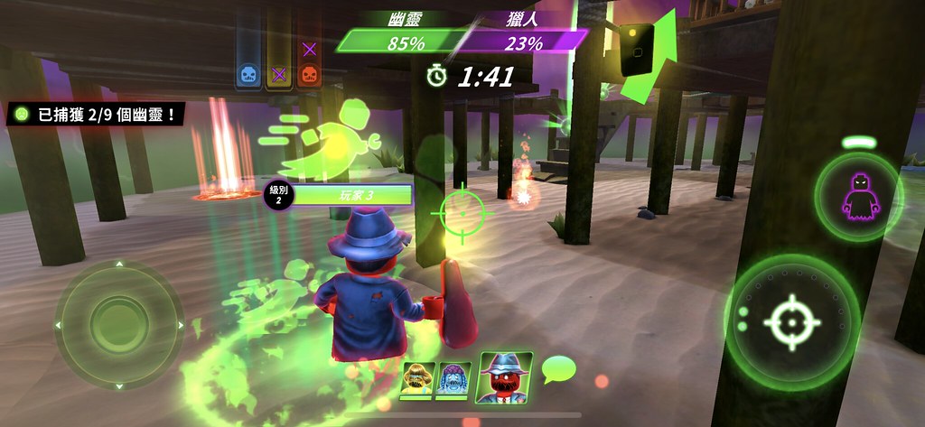 最後,來看看 Hidden Side 遊戲另一大重點「對戰」!玩家可以選擇扮演鬼怪在場景裡四處搗亂!從你捕捉到的鬼怪中選出憤怒(紅)、狂野(黃)、悲傷(藍)屬性的各一隻(共三隻)配出最厲害的幽靈小隊吧!即時的多人遊戲(對戰)進行方式為三人一組。