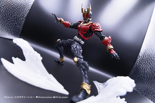 由其是在口的部分,加了半開口和全開口的配件,再加上打倒了敵人的台座,令今次的kuuga有一種暴走的感覺。