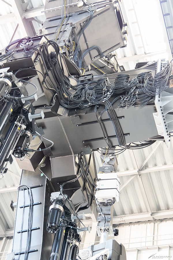 在進行讓鋼彈動起來的計畫時,並非以未知的黑科技製作,而是結合現有技術、聚集各領域人材進行開發,仍有其物理限制。在骨架部份不像過去單純站立的初鋼和獨角獸鋼彈,除了強度還必須考量到如同遊樂設施的可動設計,因此採用碳纖維等材質、全電動制動器進行製作,最終成果讓骨架輕量化僅 25t,相比台場實物大鋼彈足足減少了 10t。