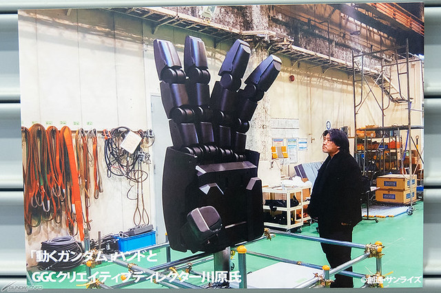 『GUNDAM GLOBAL CHALLENGE 開發現場見學會』由系統總監吉崎航、創意總監川原正毅、技術總監石井啓範共同出席。首先說明了此次 GUNDAM GLOBAL CHALLENGE 計畫的契機,在 2009 年鋼彈 30 周年公開台場「實物大鋼彈」時,不論是日昇動畫社長宮河恭夫或《機動戰士鋼彈》動畫導演富野由悠季都相當期望能讓巨大的鋼彈動起來,五年後藉由 35 周年的時機正式展開 GUNDAM GLOBAL CHALLENGE 計畫。