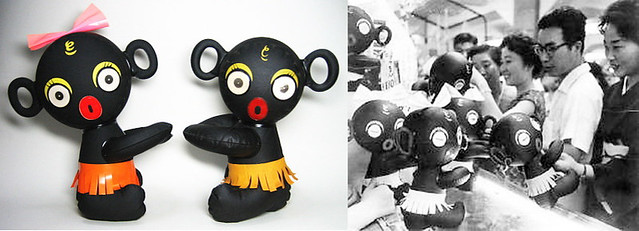 ▼圖左即為 1960 年代大流行的塑膠氣球「だっこちゃん」。圖右為當時熱賣的人潮狀況。(圖片來源:Middle edge)