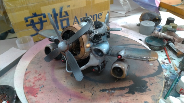 二戰中的飛機主要為魚雷機和俯衝轟炸機,由於戰術的應用與敵人(航母/戰艦)的差別,飛機在載彈與動力部分會有差異。這次設計以魚雷機為基礎,再加上誇張的引擎與蒸氣管路這些科幻元素。
