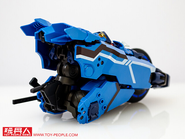 ▼ 不過最讓人驚豔就是它的「完全變形」機構,雖然說明書上寫著需替換部份零件,但那也只是武器部份,本體確實不需拔來拆去就能變形為半截機車。即使是萬代親兒子鋼普拉,也幾乎不曾在 HG 等級出現這麼出色的變形結構,光這點就相當值得買來體驗一下。運用「REALISTIC 貼紙」在車體兩側貼上標誌與線條,質感進一步提昇!