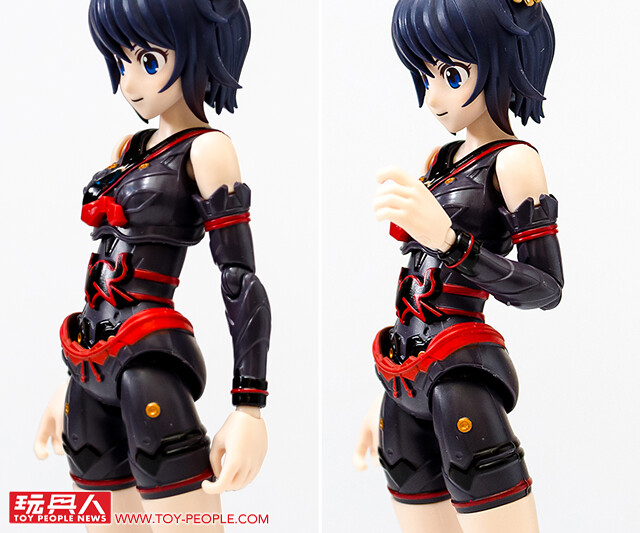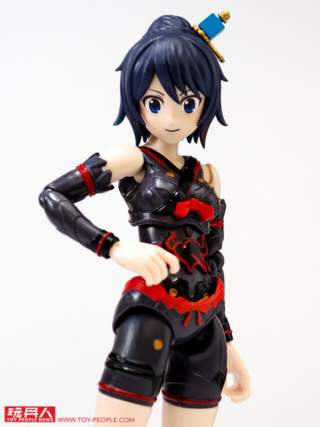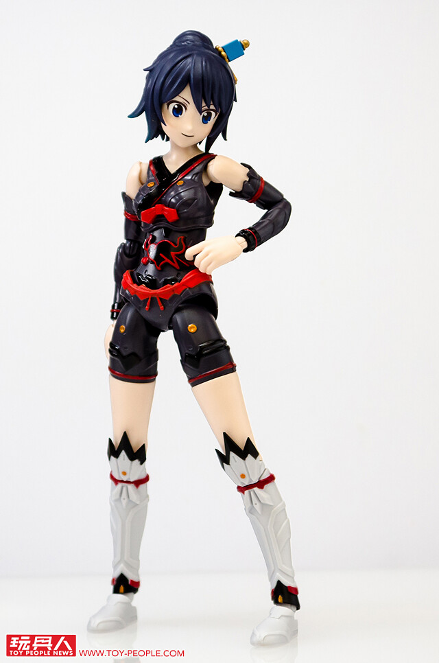 ▼  AOI 的設計也是融入了十足的和風元素,彷彿忍者的紅黑色服裝以 TAMASHII NATIONS 的 LOGO 設計而來,頭上的髮簪還有個你經常在外盒包裝角落看到的藍色方塊,整體塗裝相當精緻。