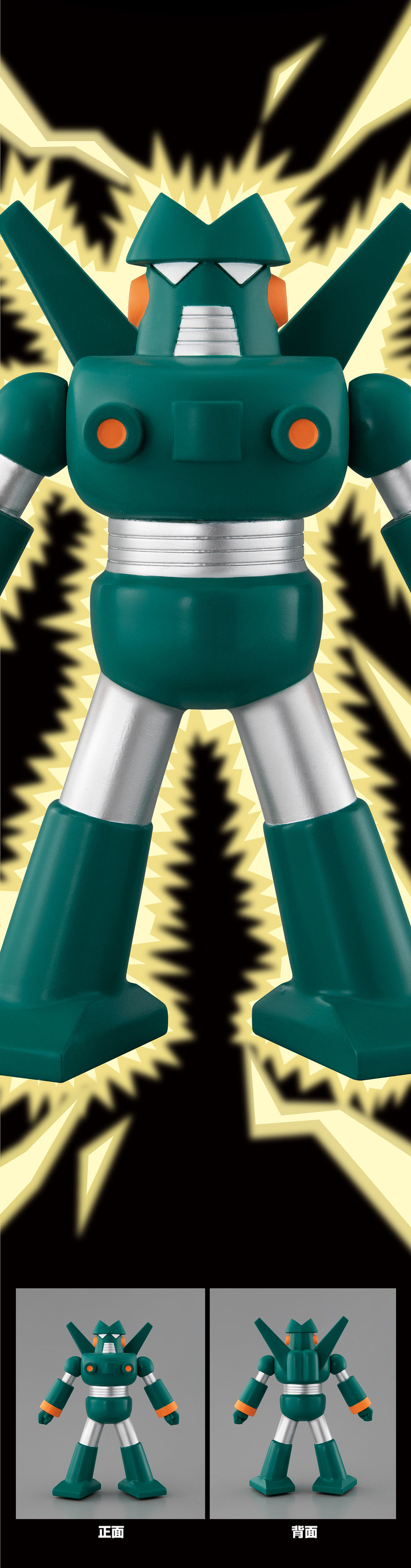 以國民動漫《蠟筆小新》中,五歲幼稚園小孩野原新之助的玩具為設計,將小新崇拜的機器人偶像-超電導「康達姆機器人」立體化!尺寸約高 180 mm,並以手部、腰部微可動的設計,重現康達姆機器人在劇中的模樣。整體以綠色為主色調,並施以金屬質感的塗裝與跳色的橘色點綴,細部的造型也相當還原。並附有蠟筆小新裝玩具使用的紙箱,可將前作光屁屁怪獸和動感超人一同放入其中,體驗蠟筆小新的玩具世界~