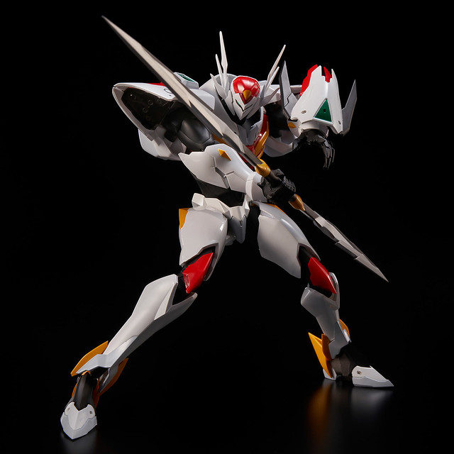 由千值練所推出的這款 RIOBOT 系列的 Tekkaman Blade,將原作中的樣子稍微修整,讓原本外型設定就已經很好看的 Tekkaman Blade 顯得更加線條俐落,部分零件使用合金材質,質感更好。可延伸拉出的關節讓可動範圍更大,要做出與原作裡面各種帥氣的姿勢都沒有問題。附屬的配件如可以分開與組合的雙刃長槍、裝設在左手上的盾牌、可替換手部零件等等全都一應俱全,是一款相當值得入手珍藏的可動玩具。
