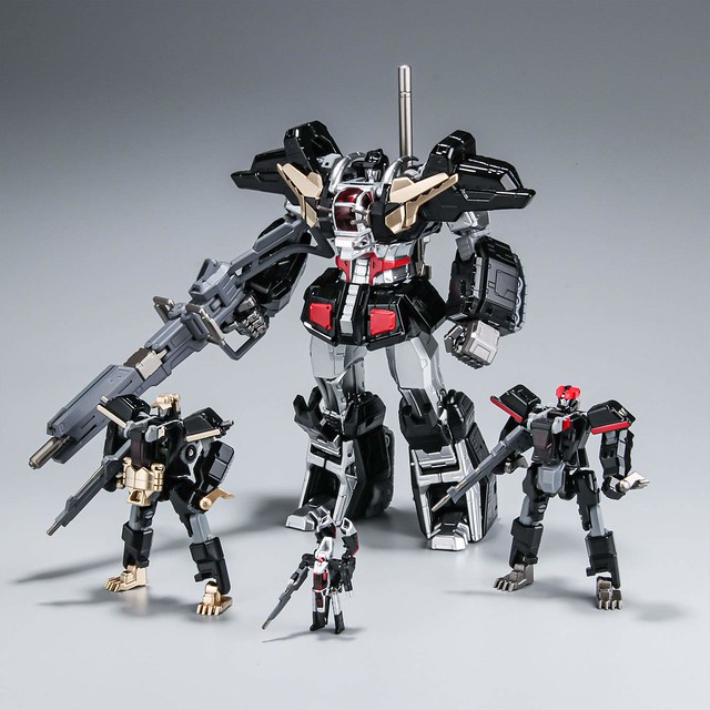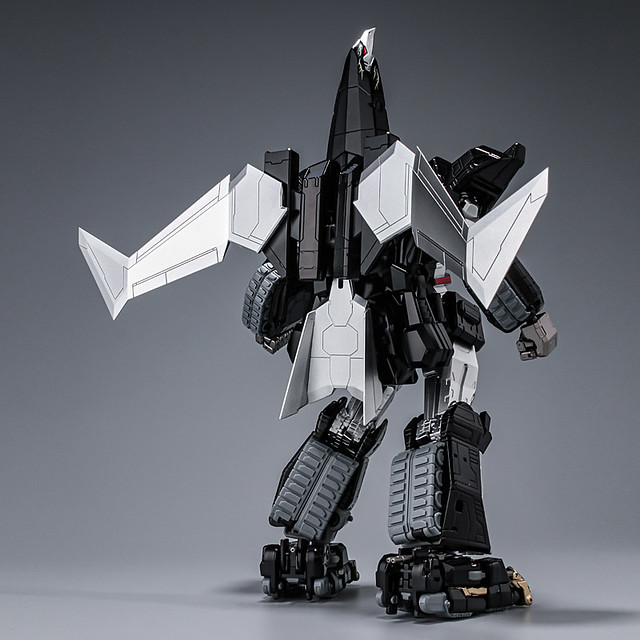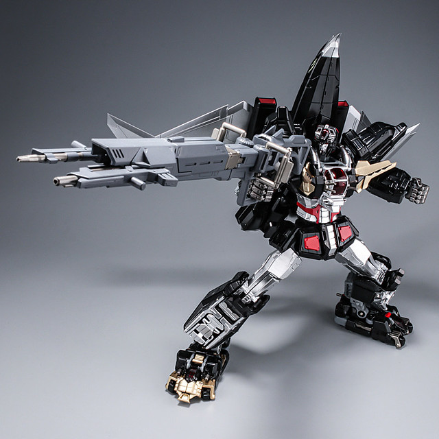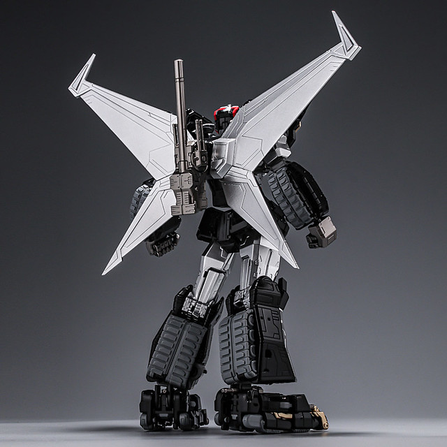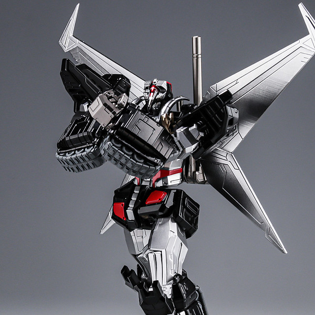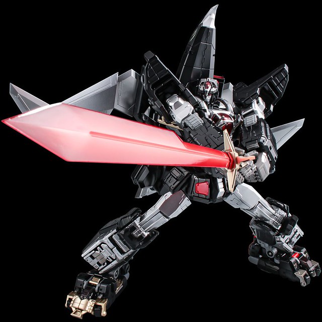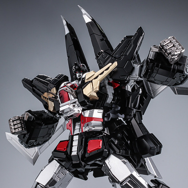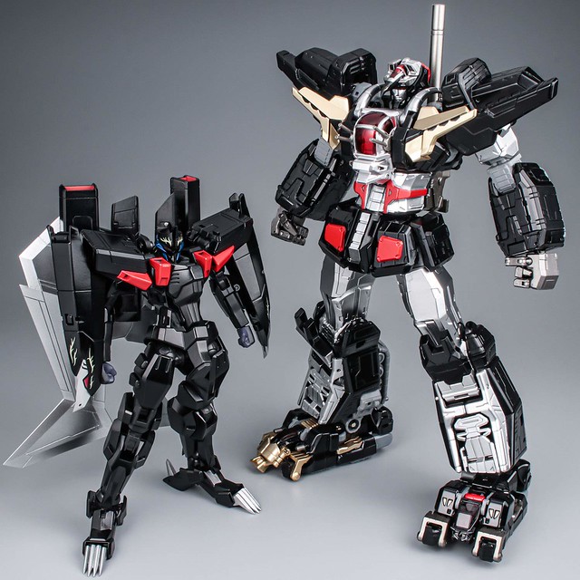 本次推出的版本為將前述兩者合併販售,並且將外型塗裝大幅變更的新版本,配色一改過去較為鮮豔的彩色,改以充滿光澤的黑與銀取代,整體金屬質感更上層樓。之前較為脆弱的肩部關節,也改以合金材質取代,把玩相信會更安心。黑翼的配色也和斷空我相近,兩者合體時的一致感更搭配更強烈。