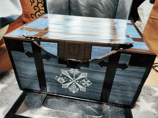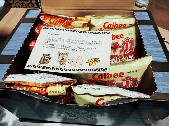 今次叉燒想分享的是這個calbee跟monster hunter 合作的禮盒。首先外表盒就是一個以遊戲中“支給品”的箱子來設計的紙箱。就算是裏面的東西吃完之後都可以用。