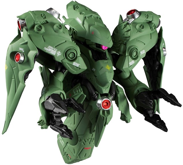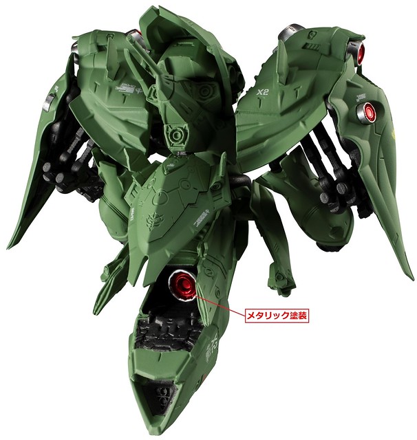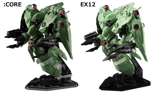 「FW GUNDAM CONVERGE:CORE 諾耶吉爾」依據 2016 年發售的「EX12 諾耶吉爾」版本重新塗裝,不僅本體更改為更深沉的綠色,全身各處的 MEGA 粒子砲口、推進器噴嘴、主手臂、輔助臂...等部位都使用了金屬色塗裝,提昇厚重質感。同時在頭部、胸部、肩部...等多達 20 處以上追加了機體編號、吉翁國徽...等標誌,細節更為豐富。