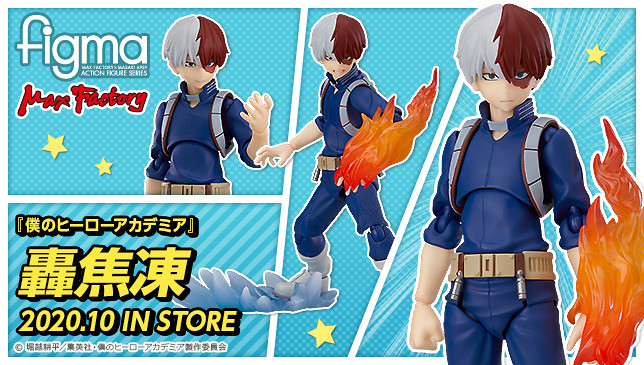 日本 MAXFACTORY 玩具公司旗下暢銷熱賣的 figma 可動系列,以人氣TV電視動畫《我的英雄學院》為題材,推出了主要登場角色「綠谷出久」和「爆豪勝己」、「麗日御茶子」後,再度發表了系列新作「轟焦凍」可動模型,參考售價為 7,500 日圓,預計將於 2020 年 10 月發售。