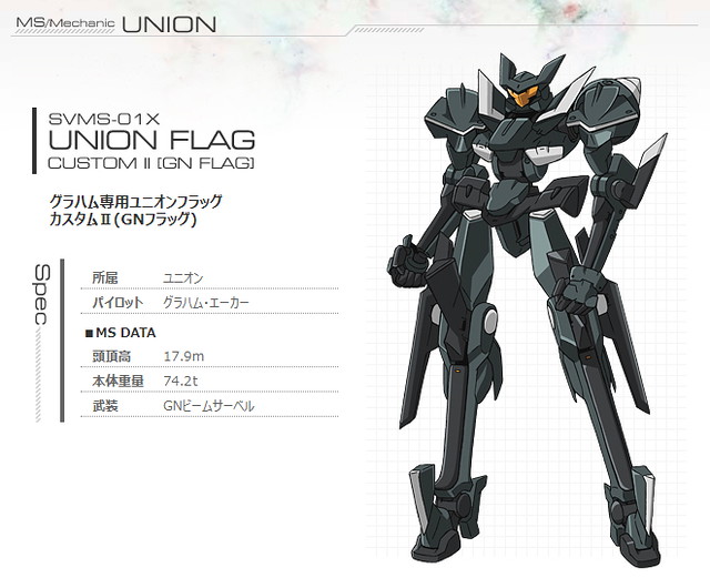 如果說第一名是粉絲們的怨念,那麼第二名就是葛拉漢.耶卡想打倒鋼彈的怨念,實現這份怨念的就是俗稱 GN FLAG 的「葛拉漢專用聯合旗幟式特裝II」。為了實現使用旗幟式打倒鋼彈的誓言,強硬移植上機體難以承受的擬似太陽爐,搞到最後只剩極高的機動型和高出力光束軍刀,活像是不要命的特攻機體。不過在劇中和能天使鋼彈打到兩敗俱傷的場景確實讓人印象深刻,也奠定了處女座葛拉漢的高人氣,難怪在最新設定中能夠死而復生回來開鋼彈。