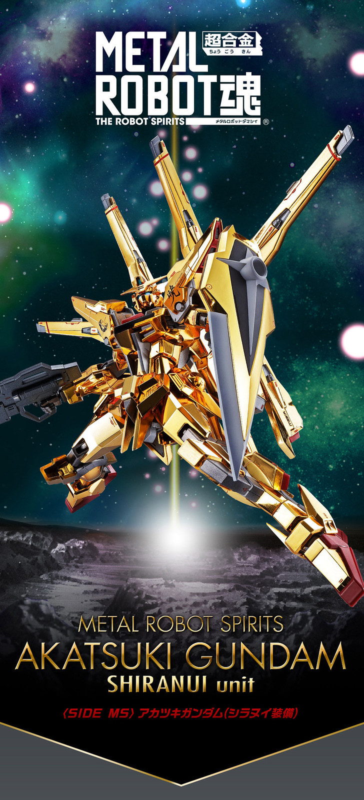 由日本 BANDAI SPIRITS 公司收藏玩具事業部 TAMASHII NATIONS 發行,結合厚重金屬質感、高度造型力、 可動結構的『METAL ROBOT魂』系列繼曉鋼彈(大鷲裝備)後,今(18)日再度發表了出自《機動戰士鋼彈SEED DESTINY》的最新商品「曉鋼彈(不知火裝備)」預計於 2020 年 08 月發售的消息。