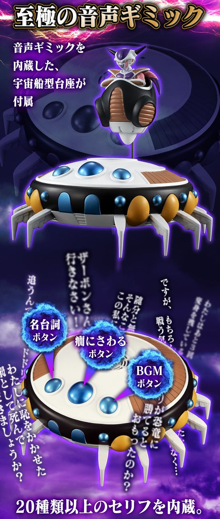 令人注目的宇宙船內建三種音效按鈕,分別是弗利沙的「名台詞按鈕」與「怒火按鈕」(暫譯,癇に障るボタン)共有超過 10 種以上的音效模式,以及會播放經典背景音效的「BGM 按鈕」,收錄《恐怖のギニュー特戦隊》與《組曲 ドラゴンボールZ》兩首曲目。