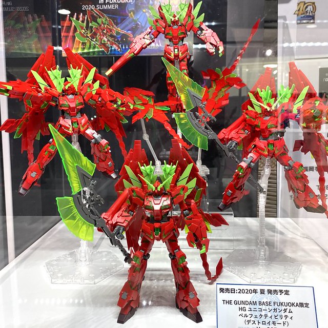 於 2019 年底登陸九州地區、日本國內第二家由官方直營的鋼彈模型綜合設施「THE GUNDAM BASE FUKUOKA(鋼彈福岡基地)」日前於店內展出了最新限定商品「HG 1/144 RX-0 完全裝備型獨角獸鋼彈(毀滅模式)Ver.GSF」,預計 2020 年夏季發售。