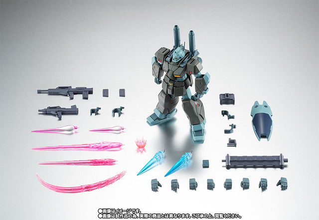 商品內容:本體、犢牛式機關槍、吉姆光束步槍、盾牌、預備彈匣×2、加農砲特效(大)、加農砲特效(小)、吉姆光束步槍特效一組、光束軍刀特效、光束軍刀特效(曲)、噴嘴推進特效(曲軸)×2、各種轉接零件一組、替換用手掌左右各4種、手首收納架