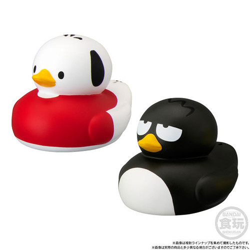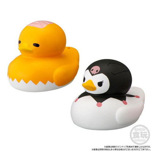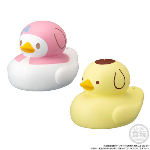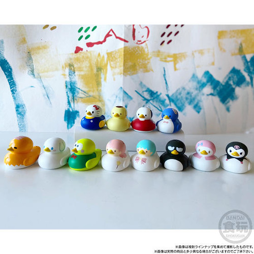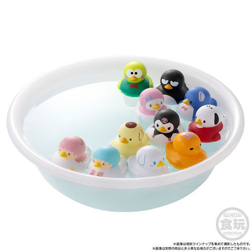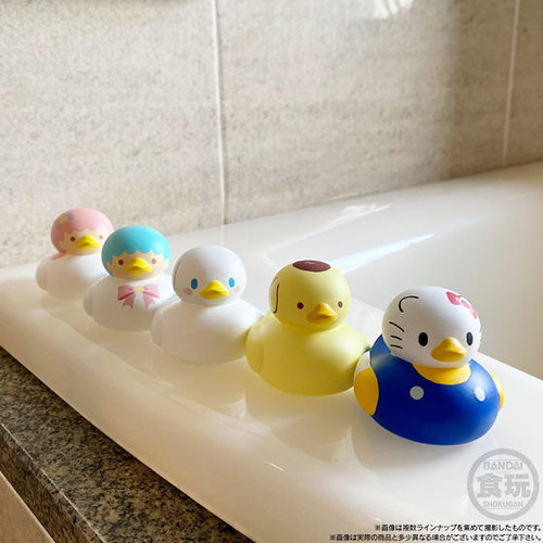 BANDAI CANDY的「洗澡小鴨!」系列盒完,將可愛的角色們都化為泡澡時的好夥伴-洗澡小鴨的模樣,在第一彈推出的「洗澡小鴨!玩具總動員4」盒玩受到好評後,再次推出以三麗鷗家族角色為主題的「洗澡小鴨!SANRIO CHARACTERS」,12款陣容分別為:Hello Kitty、大耳狗喜拿、美樂蒂、布丁狗、雙星仙子KIKI、雙星仙子LALA,帕恰狗、酷企鵝、蛋黃哥、酷洛米、山姆企鵝與大眼蛙。
