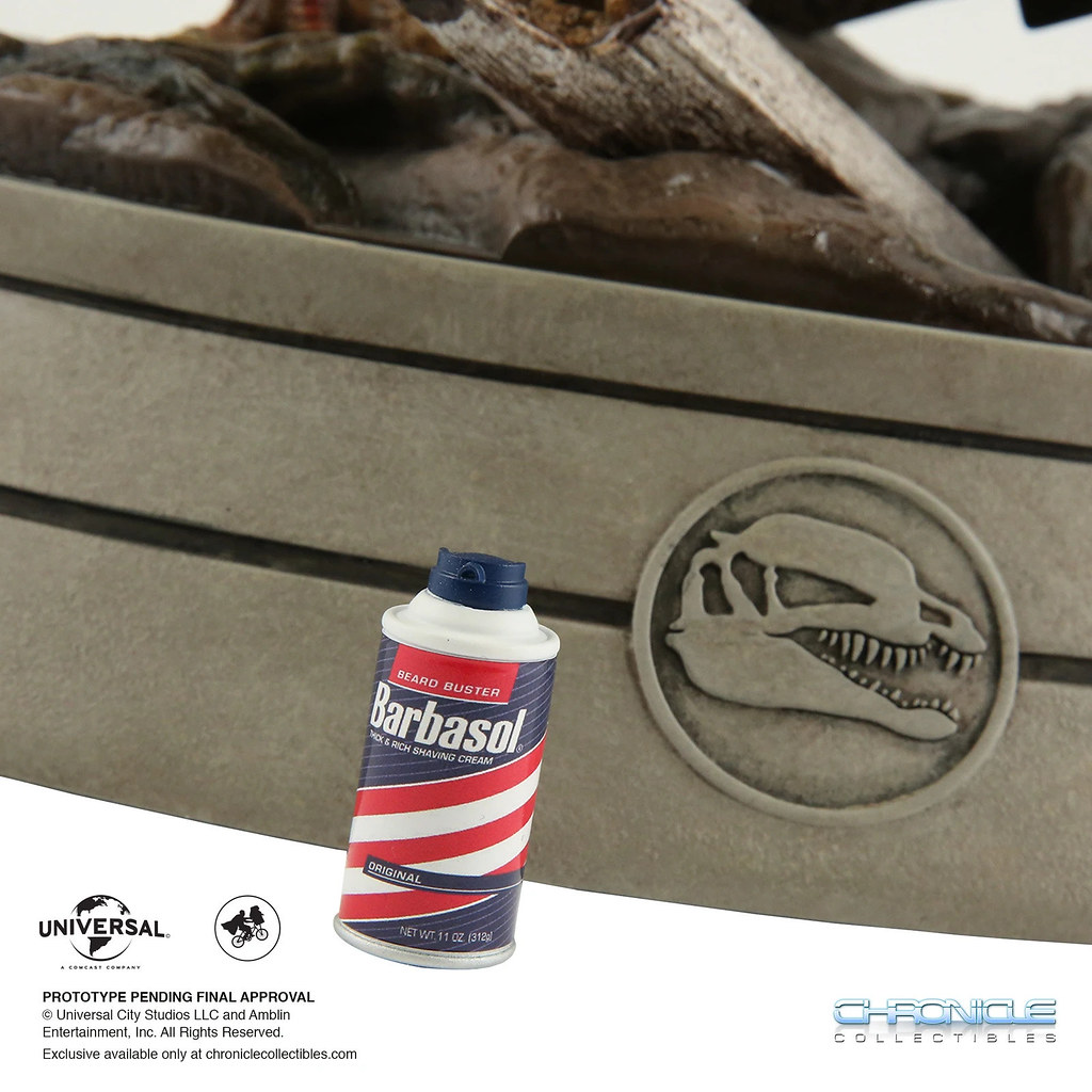 全高約16英寸,雙冠龍腳下踏著毀壞的路標為底座,並有頗具質感的座台。首批售出的 100體雕像附有 Chronicle Collectibles 獨家的1/4比例 Barbasol 刮鬍泡罐。
