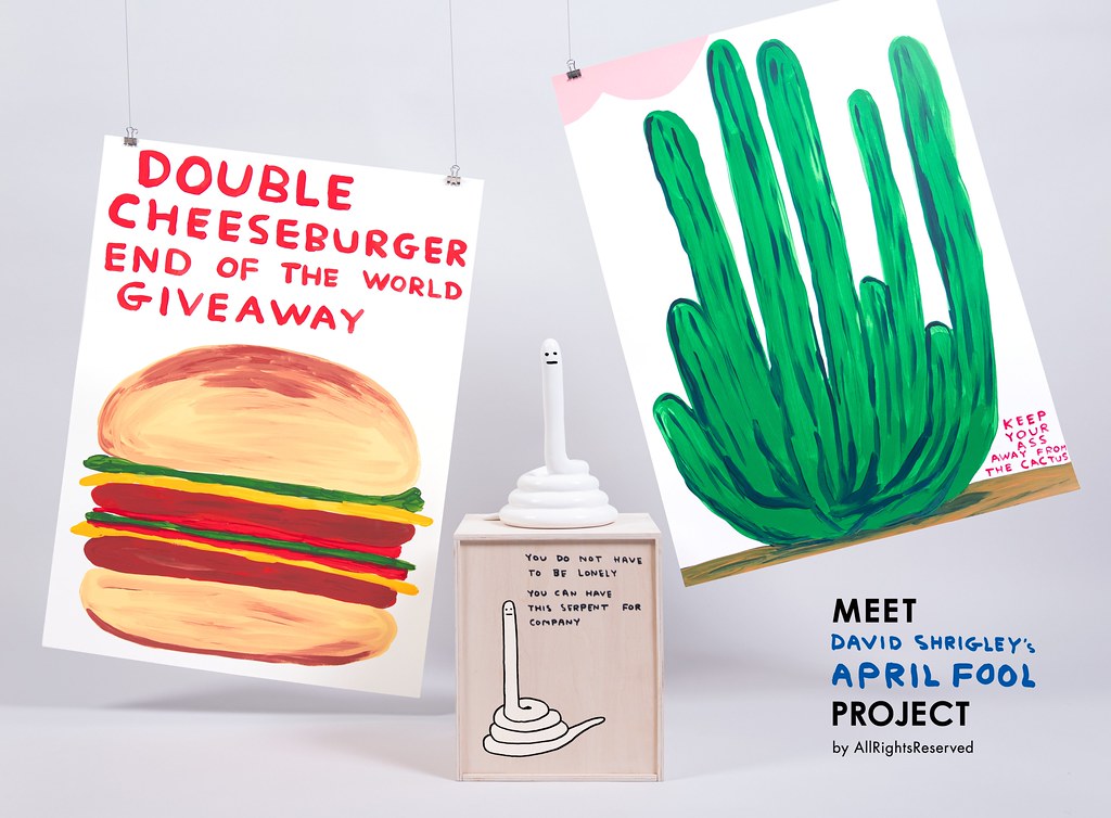 David 的作品涵括多個不同範疇,由為倫敦藝地標特拉法加廣場(Trafalgar Square)創作的大型公共雕塑《Really Good》 (2016),以至將其著名厭世天鵝雕塑變成滑稽浮床《Ridiculous Inflatable Swan-thing》等生活小工具,他一直努力嘗試不同規模和題材的創作。《MEET David Shrigley’s April Fool PROJECT》發佈全新雕塑《SERPENT》與兩枚原創絲網版畫。