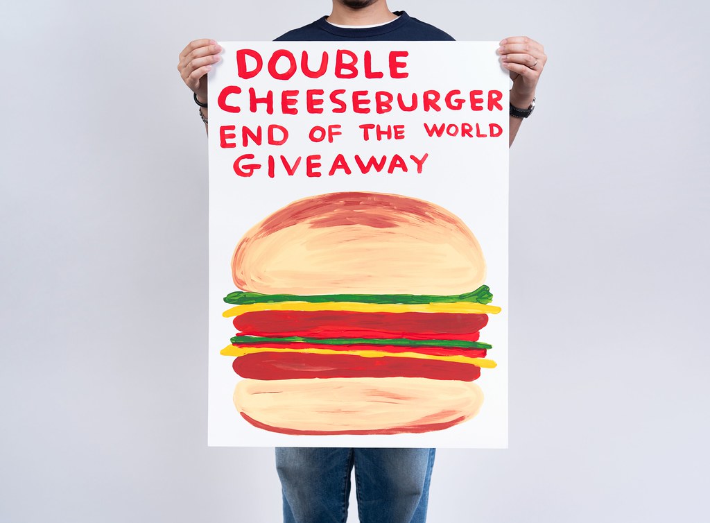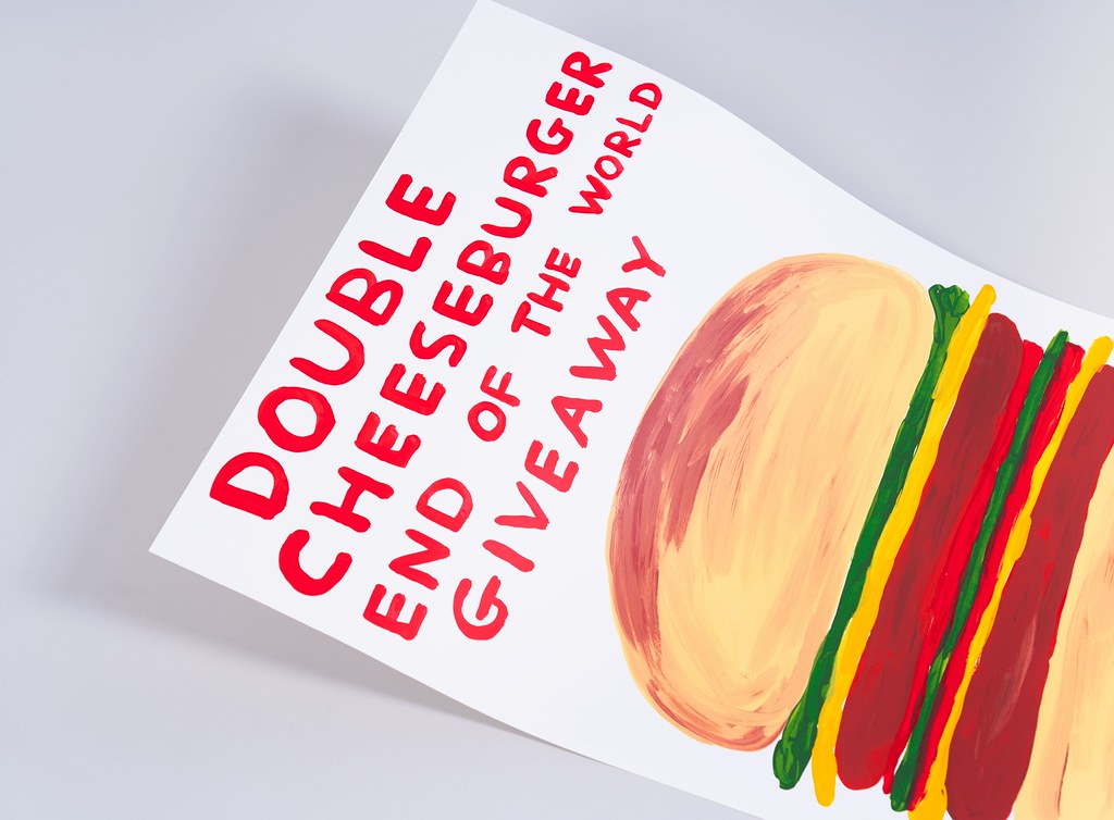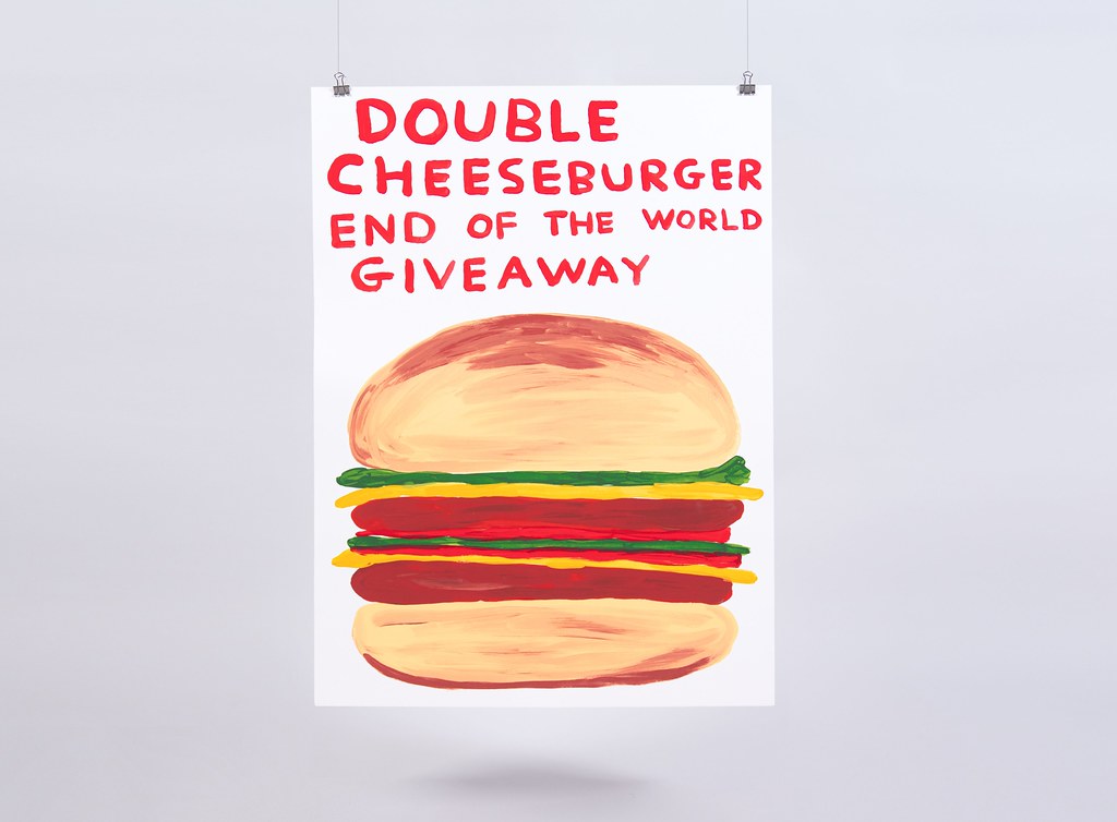 面對困境,David 建議用藝術作品以幽默應對。他笑謂其名為《Double Cheeseburger End Of TheWorld Giveaway》的版畫作品正好提供逆境良策:「幸好距離世界末日還有一段時間,但即使末日來到,為每人派發免費芝士漢堡也許可撫慰恐懼不安。」