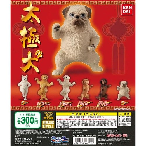 結合太極拳的諧音,「太極犬」轉蛋顧名思義就是在打太極拳的狗狗!將可愛的狗狗們擬人化為打太極的爆笑姿式,配上一臉蠢萌的表情,相當趣味討喜~