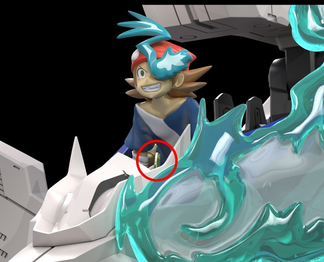 此外,套件中還附上機身圖樣水貼紙與主角阿嵐的角色模型,不僅能夠搭乘在長牙獅頭部,同樣也能替換成迸出藍色火焰的「本能解放」造型!