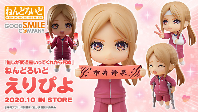 日本GOOD SMILE COMPANY 玩具公司旗下種類超過近千款的人氣商品 「黏土人」系列,將推出香香動漫《神推偶像登上武道館我就死而無憾》中的主要角色「黏土人 繪里飄」(ねんどろいど えりぴよ)可動模型,參考售價為 4,545 日元,預計於 2020 年 10 月發售。