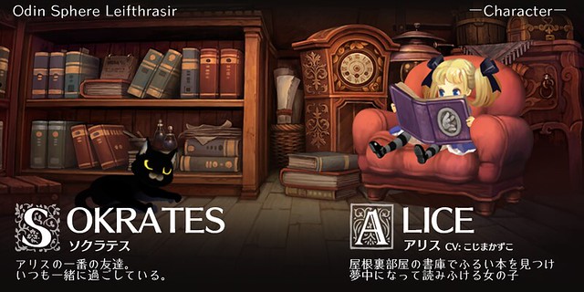 愛麗絲是在閣樓書房中閱讀故事繪本《奧丁領域》的小女孩,身旁跟著一隻懶洋洋的黑貓「蘇格拉底」,玩家將隨著愛麗絲閱讀的故事章節進行遊戲。遊戲絕大部分的劇情,實際上都與艾莉絲無關,只有在章節告一段落時才會再次登場說出感想。但是當玩家滿足特定條件後,愛麗絲所在的書房便會故事中的事物產生連結,兩隻樣貌熟悉的「噗卡」出現在書房,帶來開啟真結局的第七繪本...。