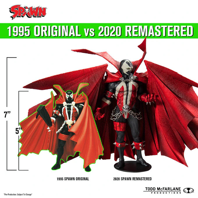 知名玩具廠牌麥法蘭(McFarlane Toys)在募資平台 Kickstarter 發起了一項會讓「閃靈悍將」(Spawn)老粉絲大興奮的專案:將 1995 年推出的第一款閃靈悍將 5 吋可動人偶 Remaster,推出 7 吋大小、更加精緻的元祖造型閃靈悍將可動人偶與漫畫!