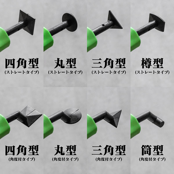 配件中包含直柄、彎柄等 8 種造型的接頭可替換,並附上對應各形狀的 180 號・240 號・400 號黏貼式砂紙,可針對各種造型進行打磨。