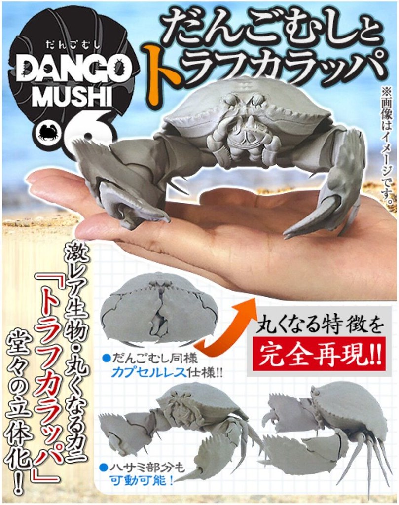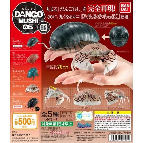 日本萬代公司轉蛋事業部「GASHAPON」旗下超人氣的擬真「團子蟲(鼠婦)」轉蛋系列,繼「團子蟲」、「古巴蟲篇」、「大王具足蟲篇」等作品後,將推出全新的第六彈新作:「團子蟲06 饅頭蟹篇」轉蛋(だんごむし06 だんごむしととらふからっぱ),全五款,每轉參考售價 500 日圓,預計將於 2020 年 04 月第 5 週發售,。