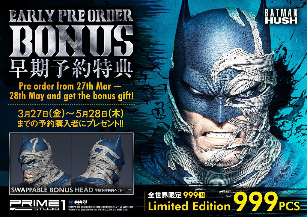 日本高端雕像廠牌 Prime 1 Studio 以經典美漫大作《蝙蝠俠:緘默》為題製作過多款蝙蝠俠、超人、毒藤女作品,接續我們日前介紹的「蝙蝠俠 "蝙蝠洞"Ver 胸像」,今天小編要帶來的是全身雕像-「Museum Masterline」系列 1/3 比例「蝙蝠俠 "蝙蝠洞"Ver」!並同步推出普通版與 DX版,預計將於 2021 年 6~9 月發貨。