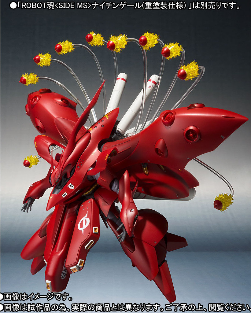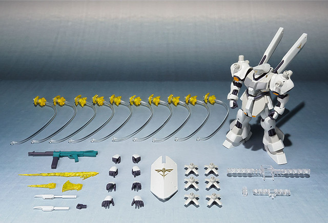 「ROBOT魂 腦波傳導型德卡」重現了特徵的乳白色裝甲、高機動型推進背包與雙肩感應砲基座,並在頭部、盾牌等多處印上新吉翁的金色紋章。武裝部份收錄了展開造型的 6 枚感應砲、光束突擊步槍、光束劍斧、光束特效零件等,能夠搭配多種造型手掌展示戰鬥場景,更一次附上了 10 組感應砲專用特效,不僅能讓腦波傳導型德卡使用,也能完整支援「ROBOT魂 夜鶯」的 10 枚感應砲!