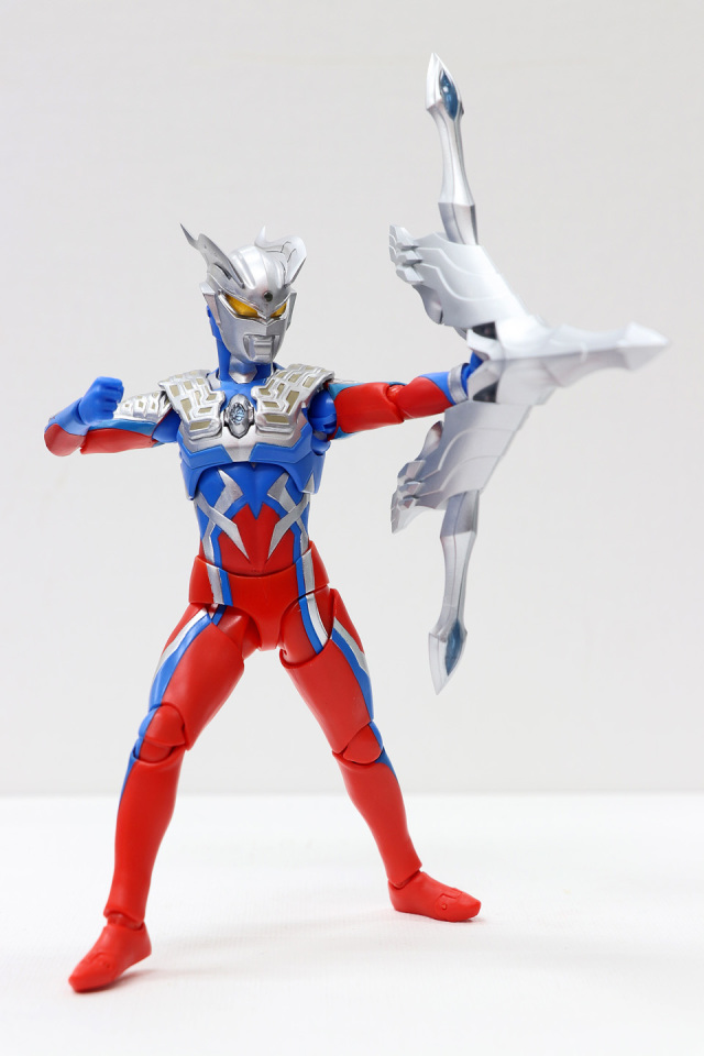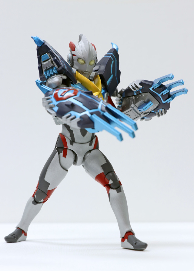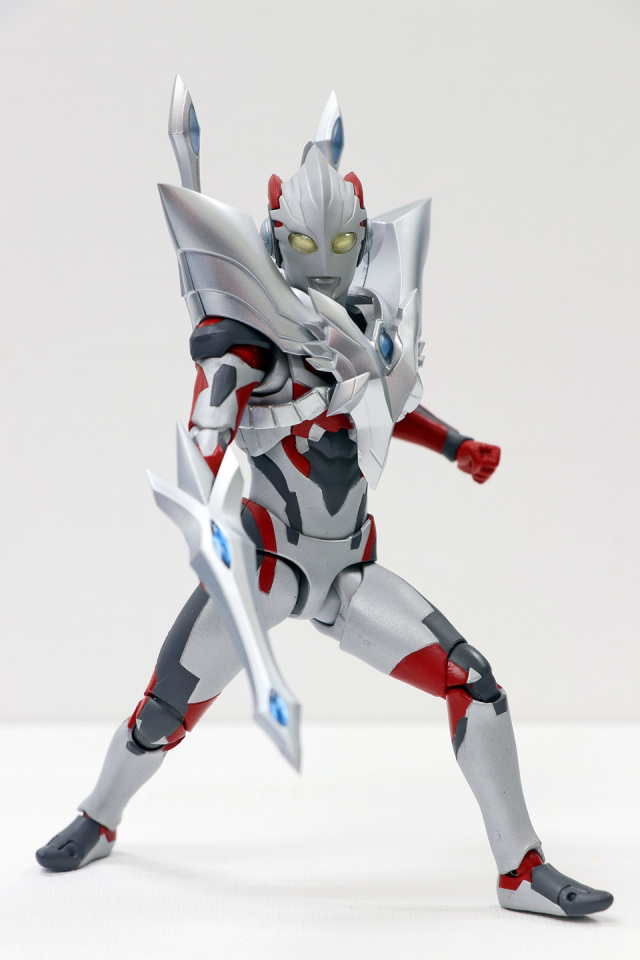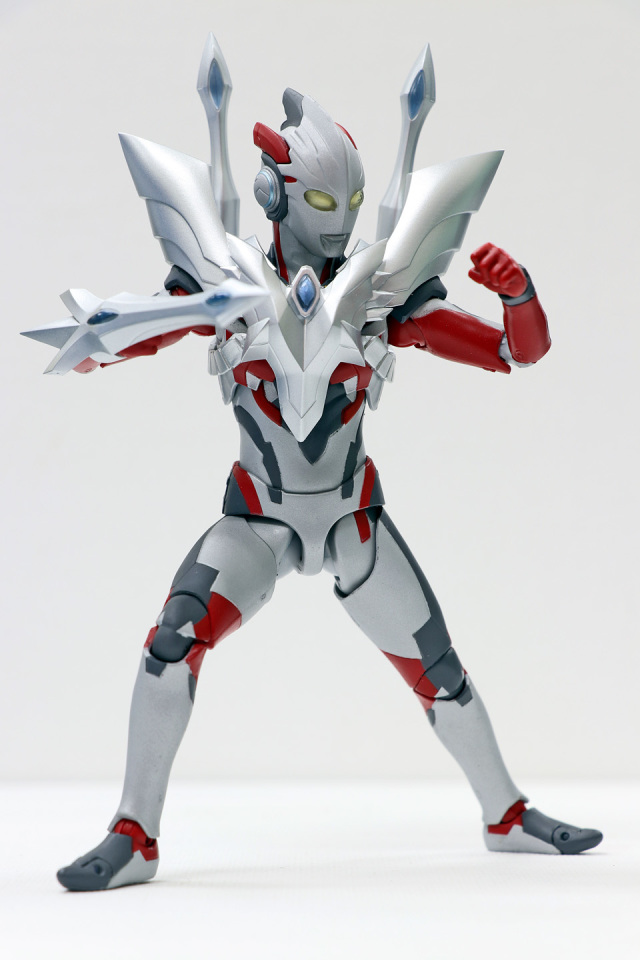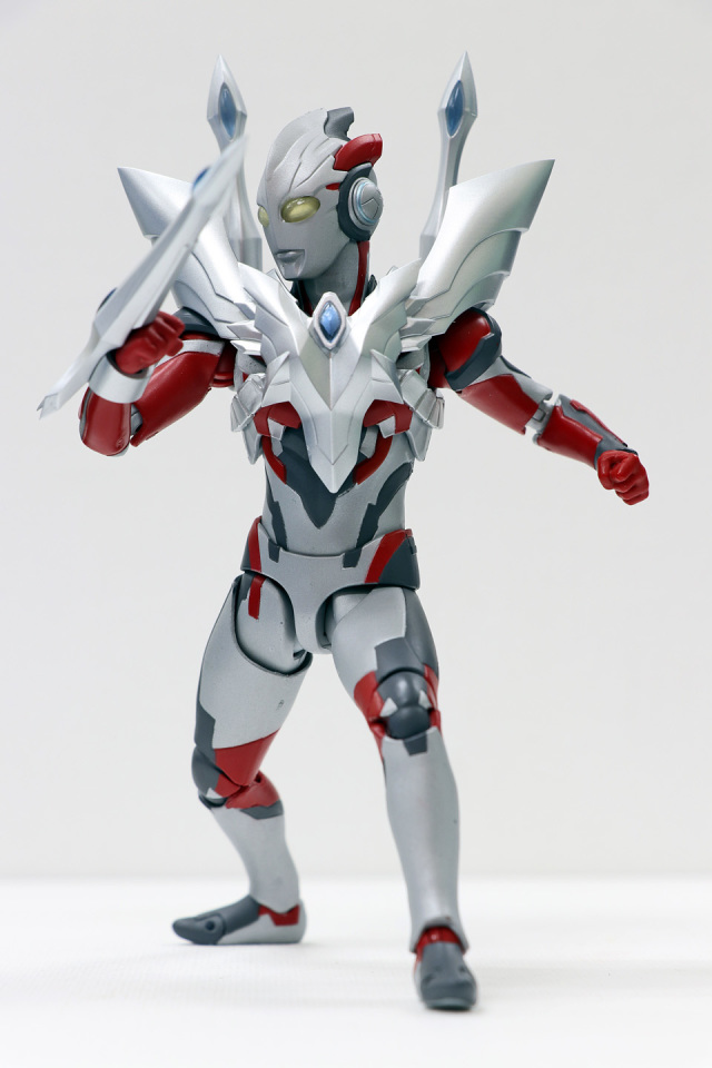QC 一般,猶幸是窗口式盒子包裝,可以讓我狠狠地挑...... 本體可動性不俗,關節鬆緊度適中。外型及比例很好,眼部亦使用了透明材質,故外型上扳了不少分數。最大賣點當然是他的可玩性。可裝備不同的電腦怪獸裝甲及 Ultimate Aegis 令他比其他 Ultraman 更好玩!這是他成功的地方!