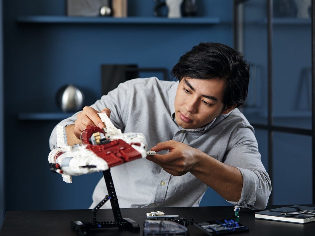 「LEGO 75275 UCS A翼戰機」共計 1673 片零件,組裝完成之後長度來到 42 公分,高約 27 公分(含展示架),根據《絕地大反攻》裡的外觀設計,以白色、酒紅色磚為主調,高度還原了機體的箭頭造型、可旋轉的雷射砲、噴射引擎,並採用全新零件製作駕駛艙蓋,整體運用斜面、弧面磚勾勒出線條,並以大量平面磚修飾表面,散發出偏收藏向的高級質感,本作還會附上一個印刷精美的駕駛員人偶與顯示 A翼戰機的資料版(貼紙)。